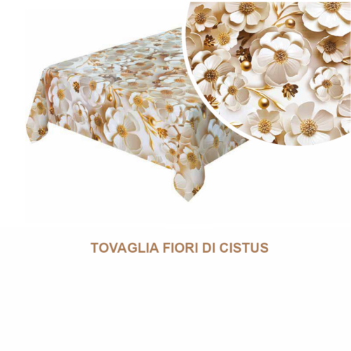 Tessuto per tovaglie antimacchia FIORI DI CISTUS in PVC effetto seta