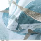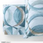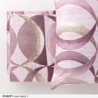 Il disegno a cerchi sovrapposti, ripetuto con equilibrio su lenzuolo e federe, conferisce movimento e personalità alla biancheria.