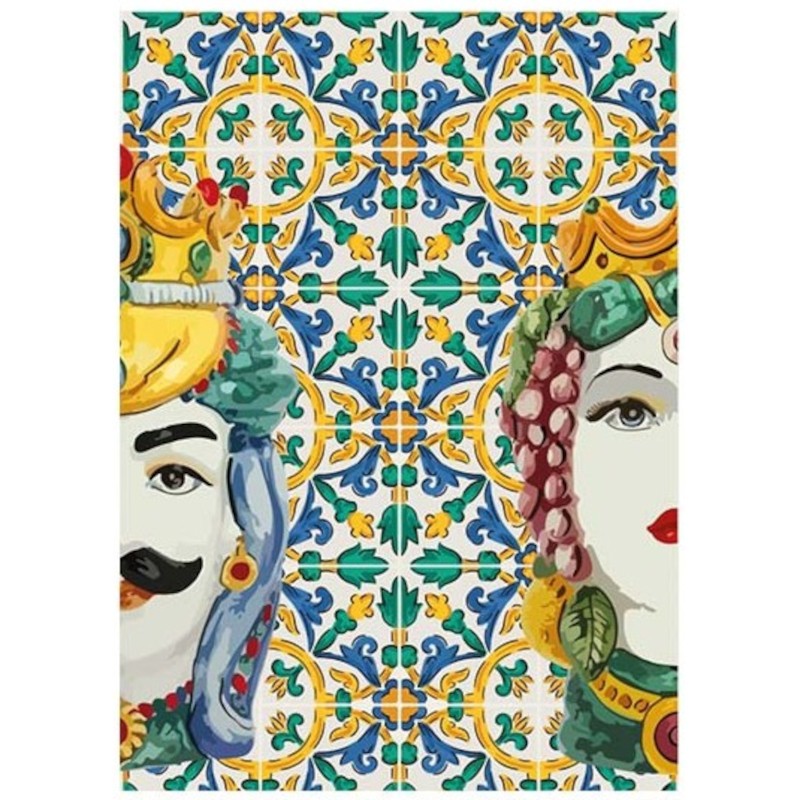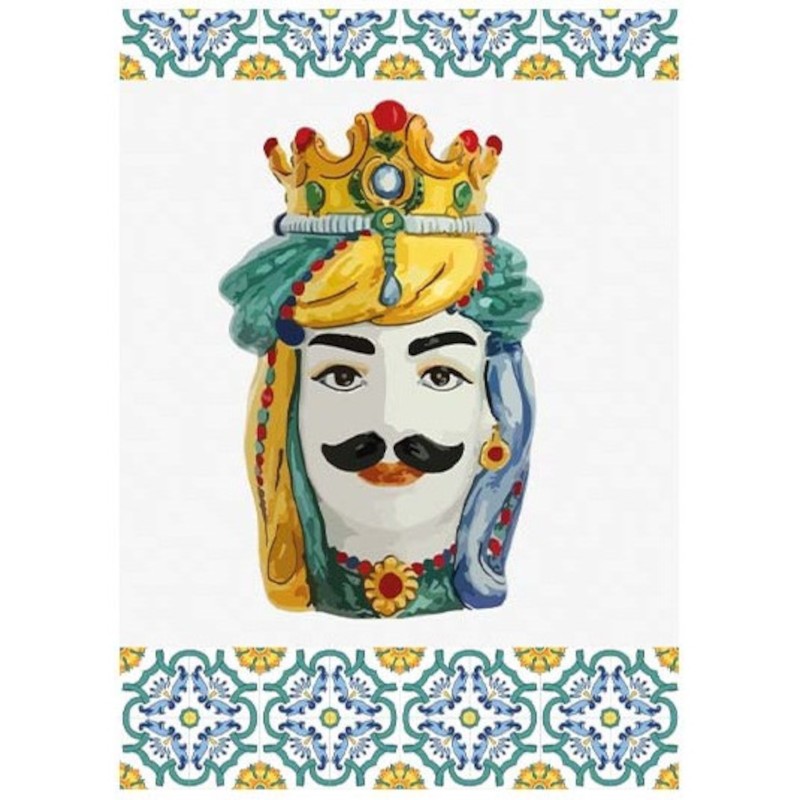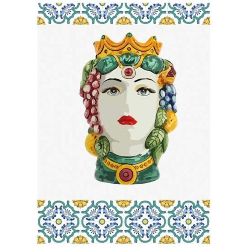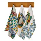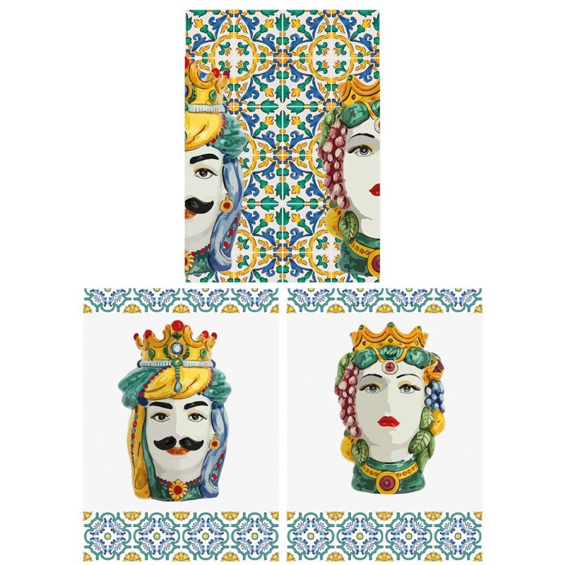 Set di 3 strofinacci cucina stampa digitale con raffigurazioni tipiche di arte siciliana.