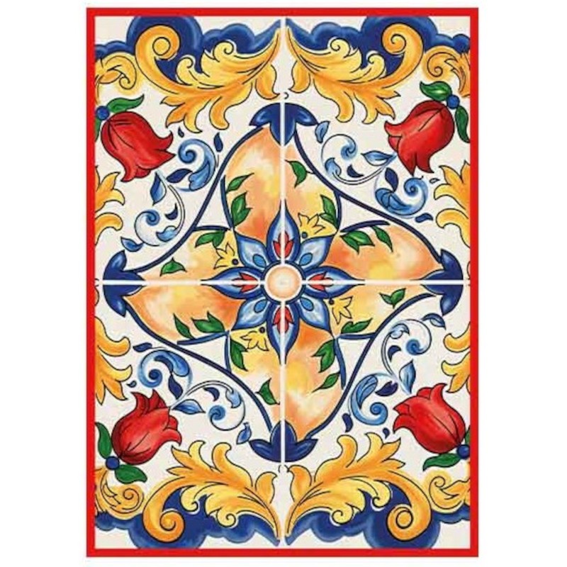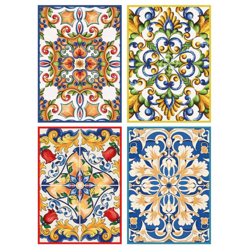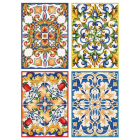 Set di 4 strofinacci cucina stampa digitale con disegni di maioliche siciliane.